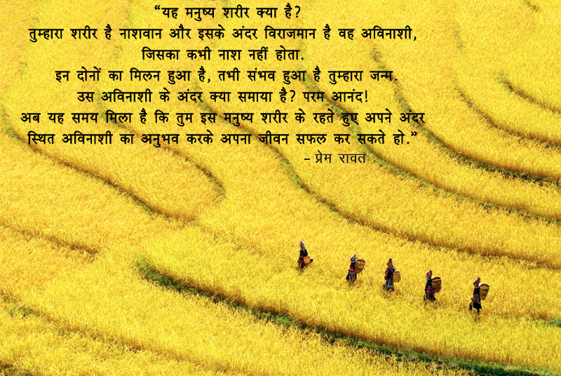 यह मनुष्य शरीर क्या है? तुम्हारा शरीर है नाशवान और इसके अंदर विराजमान है वह अविनाशी, जिसका कभी नाश नहीं होता. इन दोनों का मिलन हुआ है, तभी संभव हुआ है तुम्हारा जन्म. उस अविनाशी के अंदर क्या समाया है? परम आनंद! अब यह समय मिला है कि तुम इस मनुष्य शरीर के रहते हुए अपने अंदर स्थित अविनाशी का अनुभव करके अपना जीवन सफल कर सकते हो.