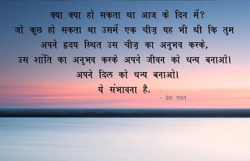 जो कुछ हो सकता था उसमें एक चीज़ यह भी थी की तुम अपने हृदय स्थित उस चीज़ का अनुभव करके, उस शांति का अनुभव करके अपने जीवन को धन्य बनाओ।